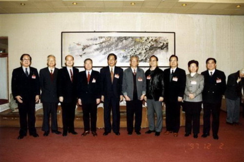 民進(jìn)第十屆中央委員會(huì)領(lǐng)導(dǎo)集體合影,左四為梅向明。