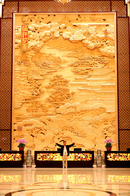 胡冠軍主持的花園新村雷迪森酒店大廳木雕裝飾工程。