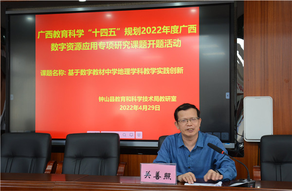 信息化時(shí)代對(duì)教育的影響越來(lái)越深刻,教育信息化是國(guó)家教育改革的重要舉措。為盡快適應(yīng)時(shí)代發(fā)展的要求,關(guān)善照積極學(xué)習(xí)現(xiàn)代教育技術(shù),率先探索學(xué)科教學(xué)與信息技術(shù)的深度融合,先后被廣西教育廳選聘為全區(qū)中小學(xué)教師信息技術(shù)應(yīng)用能力提升工程1.0和2.0省級(jí)核心專(zhuān)家組成員,到廣西多地督查、指導(dǎo)和培訓(xùn)全區(qū)中小學(xué)教師信息技術(shù)應(yīng)用能力提升工作。
