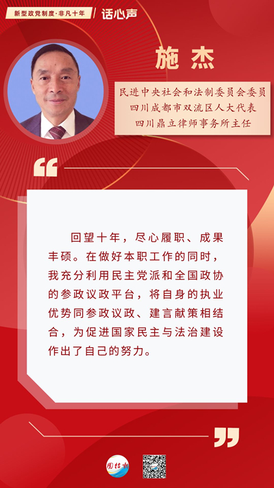 本期講述人:施杰,男,2002年加入民進(jìn),第十一屆、十二屆全國(guó)政協(xié)委員,醉駕入刑建言推動(dòng)者,現(xiàn)任民進(jìn)中央社會(huì)和法制委員會(huì)委員,四川成都市雙流區(qū)人大代表,四川鼎立律師事務(wù)所主任。