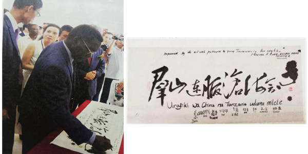 坦??偫砥竭_(dá)先生在致辭中高度贊揚(yáng)了坦中友好關(guān)系。高度評(píng)價(jià)了中國(guó)畫家許琪萍在短期教學(xué)中取得的顯著教學(xué)成果,感謝中國(guó)畫家使坦桑尼亞數(shù)十位年輕師生了解了中國(guó)文化,很快掌握和領(lǐng)悟到中國(guó)水墨畫的神奇,并用中國(guó)畫技法畫出坦桑尼亞人們的日常生活和當(dāng)?shù)仫L(fēng)光。他認(rèn)為這是一次非常成功并在相互尊重學(xué)習(xí)彼此文化基礎(chǔ)上平等的交流。并在中國(guó)宣紙上深情地寫下了他對(duì)這次文化交流的感言。他說(shuō):“文化關(guān)系是坦中關(guān)系的重要組成部分,此項(xiàng)相互尊重學(xué)習(xí)彼此文化的交流活動(dòng),增進(jìn)了中坦兩國(guó)的了解、加深了兩國(guó)人民的友誼,將對(duì)兩國(guó)友好關(guān)系的發(fā)展發(fā)揮積極作用?!?/p>