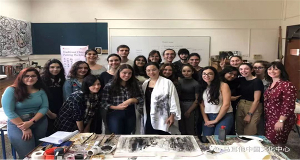 馬耳他藝術(shù)大學(xué)中國(guó)水墨畫教學(xué)體驗(yàn)課堂。