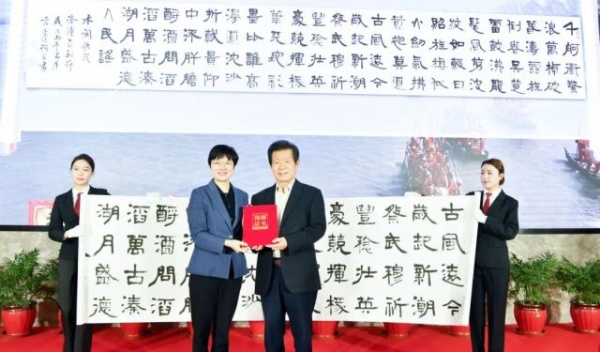 4月5日,言恭達(dá)教授凝聚匠心與鄉(xiāng)情的佳作《水調(diào)歌頭·溱潼會(huì)船節(jié)》6.5米漢隸長(zhǎng)卷無(wú)償捐贈(zèng)泰州市姜堰區(qū),將永久珍藏于該區(qū)美術(shù)館,為全區(qū)文化傳承注入新的活力。