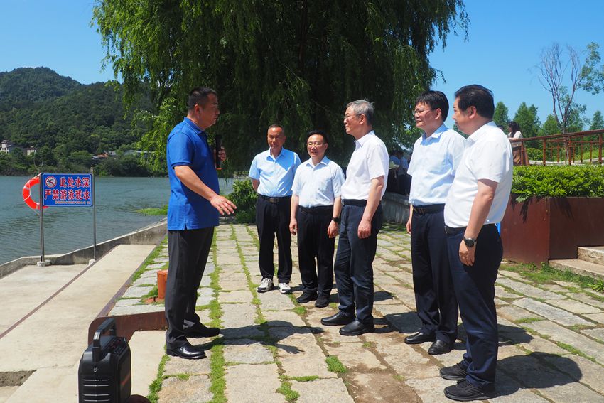 5月27至29日,民進(jìn)中央主席、長江生態(tài)環(huán)境保護(hù)民主監(jiān)督工作領(lǐng)導(dǎo)小組組長蔡達(dá)峰帶隊在江西開展考察調(diào)研。圖為調(diào)研組在鷹潭市調(diào)研水環(huán)境治理、水資源節(jié)約集約利用工作情況。
