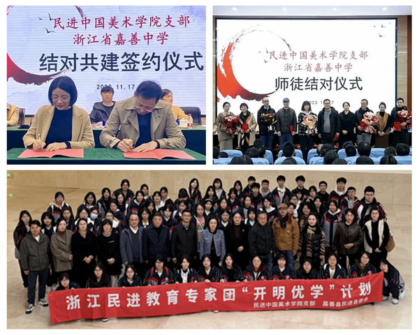 2023年11月,為深入開(kāi)展“凝心鑄魂強(qiáng)根基、團(tuán)結(jié)奮進(jìn)新征程”主題教育,貫徹落實(shí)浙江省推進(jìn)嘉善縣域高質(zhì)量發(fā)展示范點(diǎn)建設(shè)大會(huì)精神,助推嘉善縣教育事業(yè)高質(zhì)量發(fā)展,浙江民進(jìn)教育專(zhuān)家團(tuán)“開(kāi)明優(yōu)學(xué)”首站活動(dòng)在嘉善中學(xué)舉行。民進(jìn)中國(guó)美術(shù)學(xué)院支部主委陳永怡與嘉善中學(xué)簽訂為期三年的結(jié)對(duì)共建協(xié)議。雙方在提升學(xué)校辦學(xué)水平、促進(jìn)教師專(zhuān)業(yè)發(fā)展、打造體藝特色品牌方面展開(kāi)深入合作。